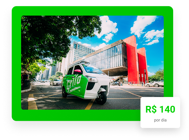 Receba a partir de R$140 por dia com veículo da Grilo, combustível e manutenção.